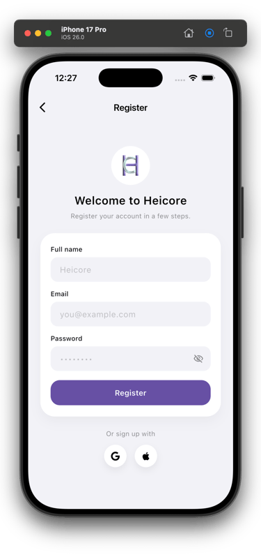 Build modern, high-performance Flutter applications with HeiCore — where design, speed, and innovation connect.