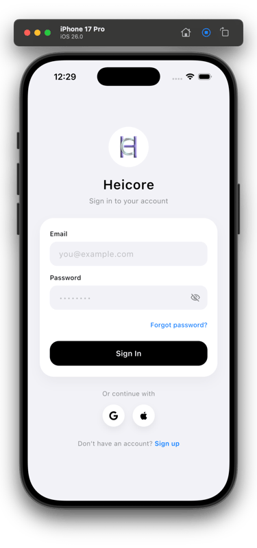 This is a digital Flutter UI template designed by HeiCore for developers who want a professional, modern, and ready-to-use sign-in / sign-up interface for their mobile applications.