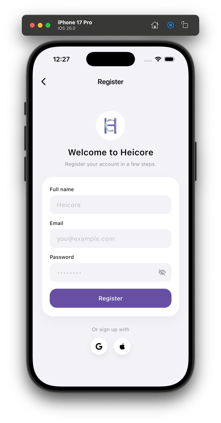 Build modern, high-performance Flutter applications with HeiCore — where design, speed, and innovation connect.