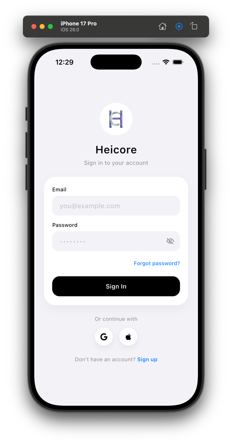 This is a digital Flutter UI template designed by HeiCore for developers who want a professional, modern, and ready-to-use sign-in / sign-up interface for their mobile applications.